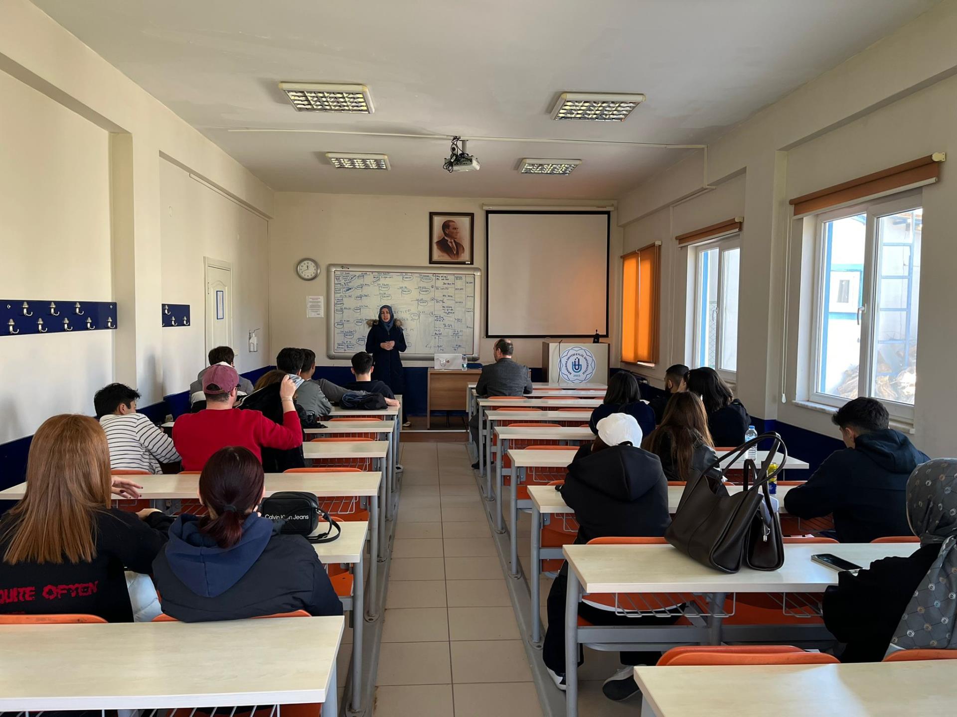 Balıkesir İl Müftülüğü ile Üniversitemiz arasında imzalanan protokol kapsamında Erdek İlçe Müftülüğü vaizlerinden Sare Balta, 08 Nisan 2026 tarihinde öğrencilerimizle bir araya gelerek Fatiha Suresi bağlamında din felsefesi üzerine anlamlı bir söyleşi gerçekleştirdi.