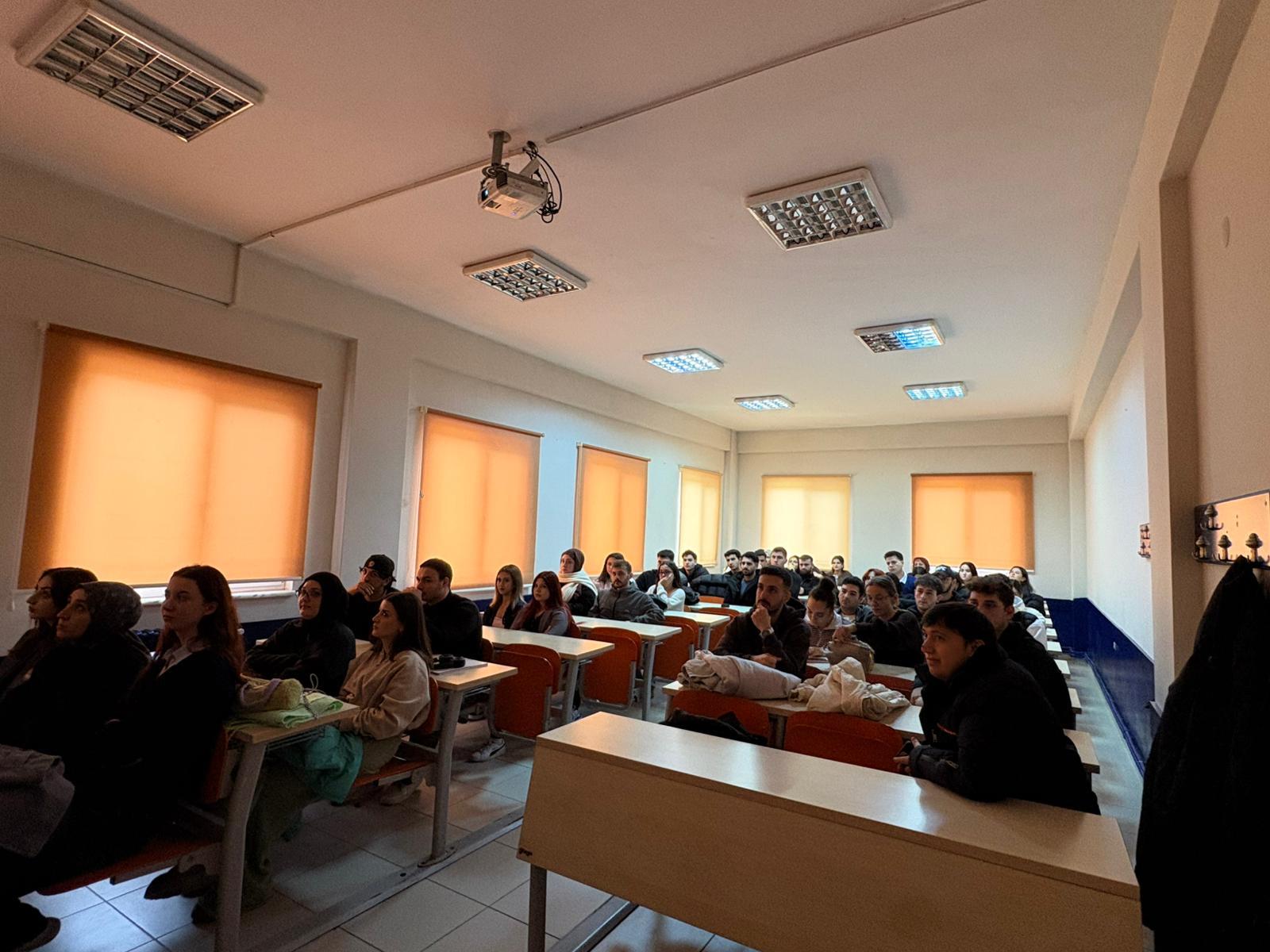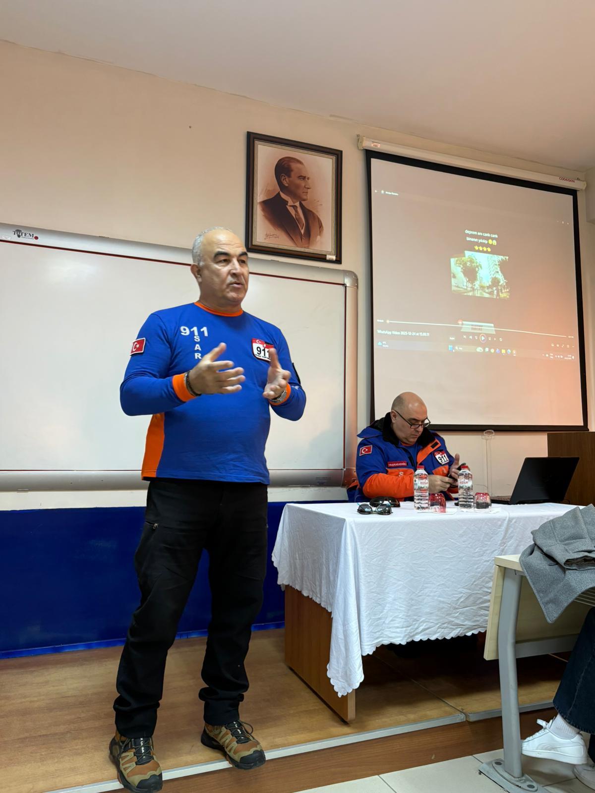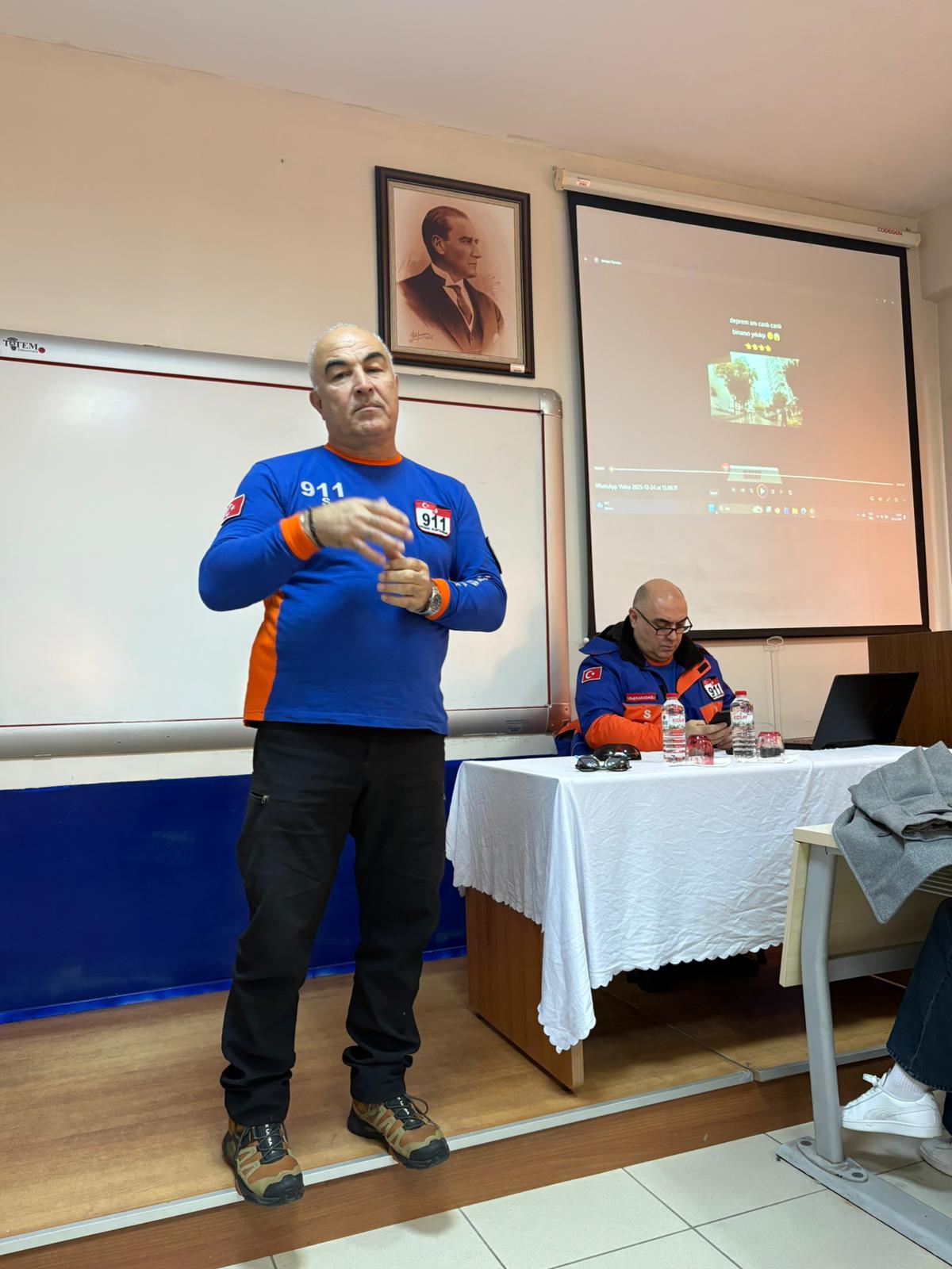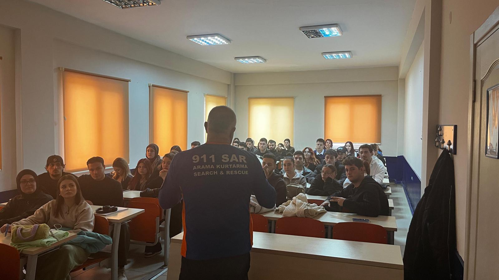 Meslek Yüksekokulumuzda öğrencilerimizin afetlere karşı bilinçlenmesine katkı sunmak amacıyla 24 Aralık 2025 tarihinde “Bir Adım Hazırlık, Bin Can Umut” başlıklı bir sosyal sorumluluk projesi gerçekleştirildi. Proje aracılığıyla öğrencilerimizin afetlere karşı farkındalıklarının artırılması ve olası risklere karşı daha hazırlıklı olmaları hedeflendi. Proje kapsamında Bandırma 911 Arama Kurtarma Derneği Başkanı Mustafa Gürsoy ile eğitmen Altuğ Karadağlı tarafından verilen “Afet Farkındalık Eğitimi” öğrencilerimiz tarafından ilgiyle takip edildi. Deprem, sel, heyelan, çığ ve yangın gibi doğal afetlerle ilgili bilgilerin paylaşıldığı eğitimde özellikle deprem konusu üzerinde önemle duruldu. Deprem öncesinde yapılması gereken hazırlıklar, deprem anında doğru davranış biçimleri ve deprem sonrasında izlenmesi gereken güvenli adımlar görseller ve videolar eşliğinde uygulamalı olarak aktarıldı. Fay hattı, deprem çantası, deprem ağı uygulamaları, dirençli yapılar ve İmar Kanunu gibi konular hakkında da bilgi veren eğitmenler, öğrencilerimizden gelen soruları da yanıtladı. Okulumuzda Öğr. Gör. Dr. Özlem Aydoğdu Atasoy tarafından verilen “Gönüllülük Çalışmaları” dersi kapsamında hazırlanan projenin yürütücülüğünü Turizm ve Otel İşletmeciliği Programı ikinci sınıf öğrencimiz Abdulhadi Sağıt üstlenirken Ayşegül Aygün ve Emirhan Yiğit de proje yardımcıları olarak görev aldı.