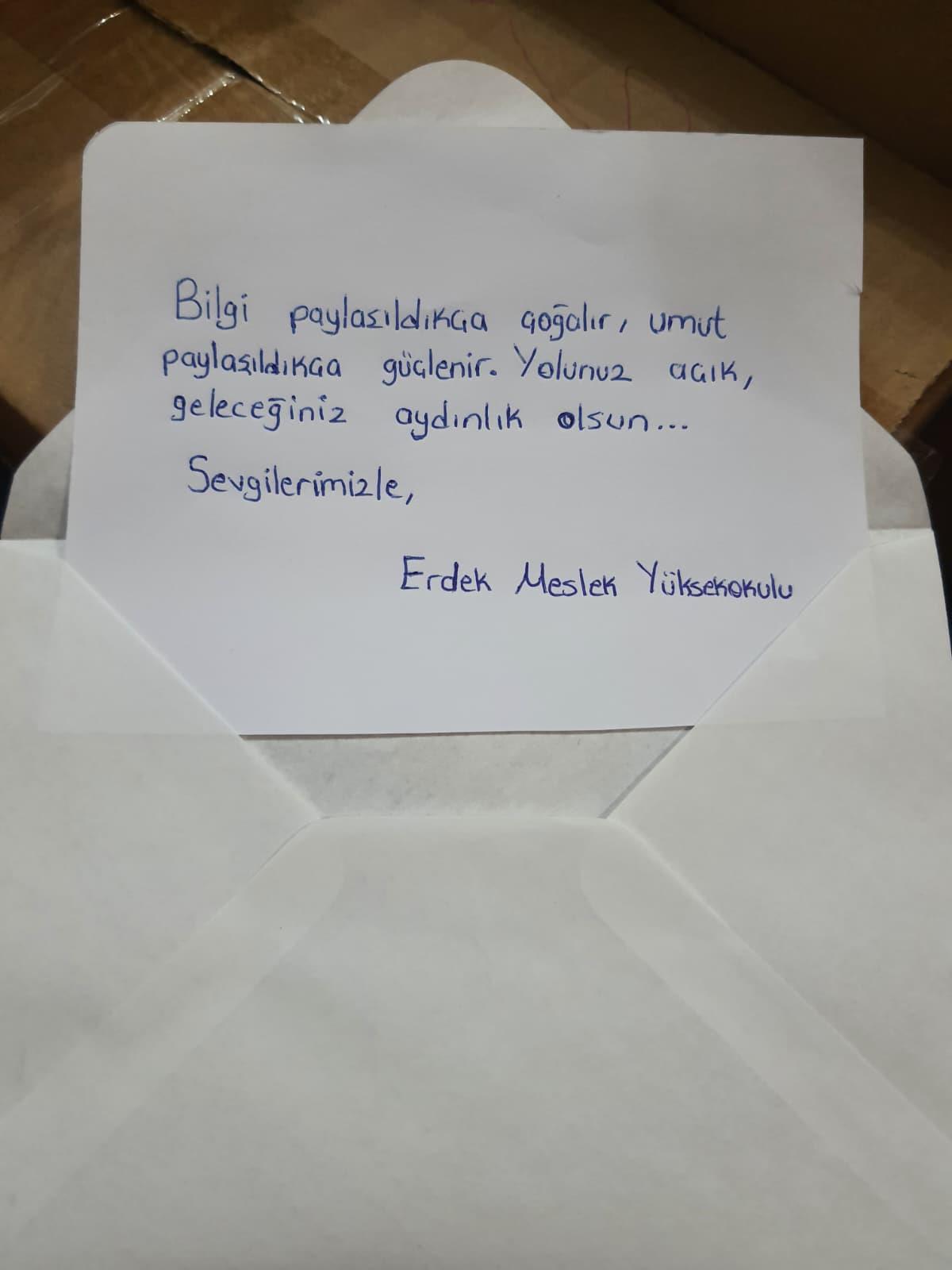 Meslek Yüksekokulumuz Turizm ve Otel İşletmeciliği Programı ikinci sınıf öğrencimiz Yelda Nur Künbül başlattığı bağış kampanyasıyla Balıkesir/Erdek’ten Mardin/Kızıltepe’ye uzanan bir sosyal sorumluluk projesine imza attı. “Bir Kalem, Bir Gelecek” başlıklı proje, okulumuz öğretim elemanlarından Öğr. Gör. Dr. Özlem Aydoğdu danışmanlığında gerçekleştirildi. Proje kapsamında 2025-2026 eğitim-öğretim yılı güz döneminde okulumuzda öğrenim gören öğrencilerimizden ve öğretim elemanlarımızdan toplanan bağışlarla alınan kırtasiye ürünleri Mardin/Kızıltepe’de bulunan Bozhöyük İlkokulu’na gönderildi. Öğrenciler kendilerine ulaştırılan kırtasiye ürünlerini görünce büyük mutluluk yaşadı. Bu bağlamda proje, öğrencilerimizin toplumsal duyarlılık bilincini ve gönüllülük anlayışını yansıtan bir çalışma olarak dikkat çekti.