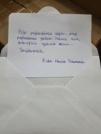 Bu değerli sosyal sorumluluk projesi için öğrencimiz Yelda Nur Künbül’ü tebrik eder, üniversiteli abla ve abileri tarafından gönderilen kırtasiye ürünlerinin çocukların eğitim sürecine katkı sunmasını dileriz. Projemize ev sahipliği yapan Bozhöyük İlkokulu yönetimine ve eğitim kadrosuna çok teşekkür ederiz.