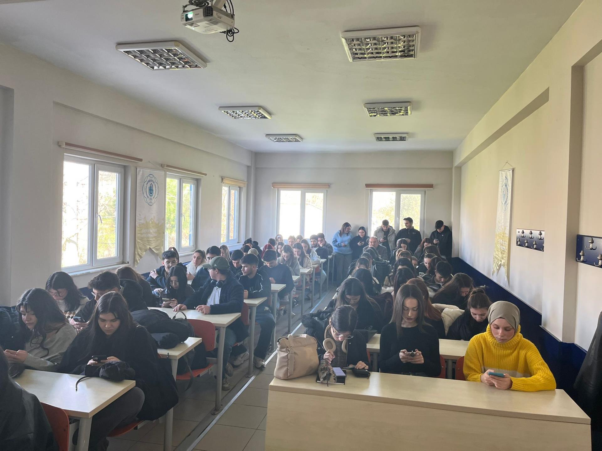 “Dumansız Kampüs” uygulaması ile tütün ürünlerinden korunma ve kullanımını bırakma yöntemleri hakkında farkındalığı geliştirmek amacıyla Üniversitemiz Tıp Fakültesi tarafından okulumuzda 24.02.2026 tarihinde öğrencilerimize yönelik dumansız kampüs eğitimi düzenlendi. Tıp Fakültemiz Ruh Sağlığı ve Hastalıkları Ana Bilim Dalı öğretim elemanı Dr. Öğr. Üyesi Ali Dayi tarafından verilen eğitimde tütün bağımlılığıyla mücadele, sağlıklı yaşam bilincinin güçlendirilmesi ve dumansız kampüs uygulamalarına yönelik farkındalığın artırılması gibi konular ele alındı.