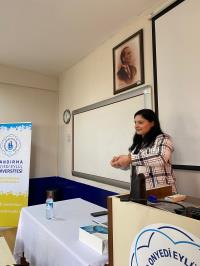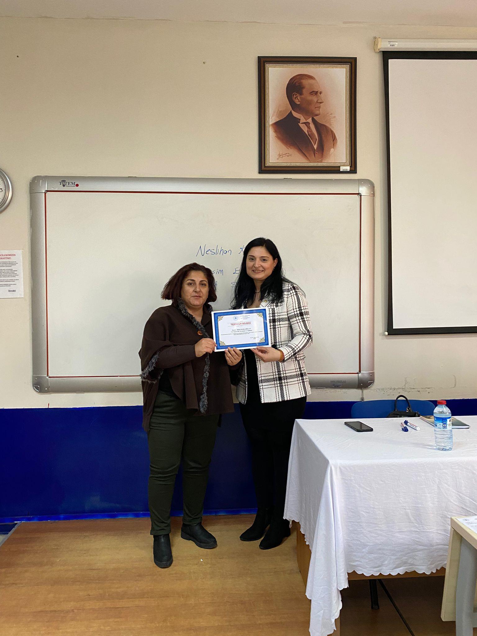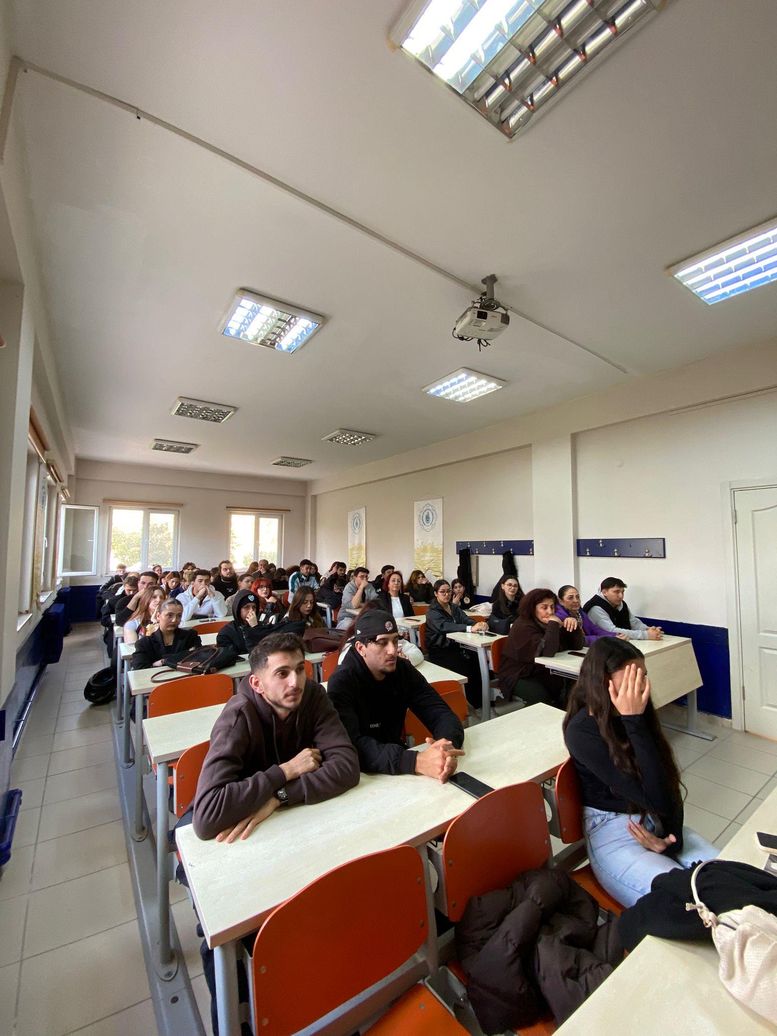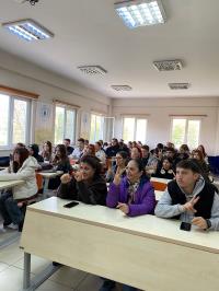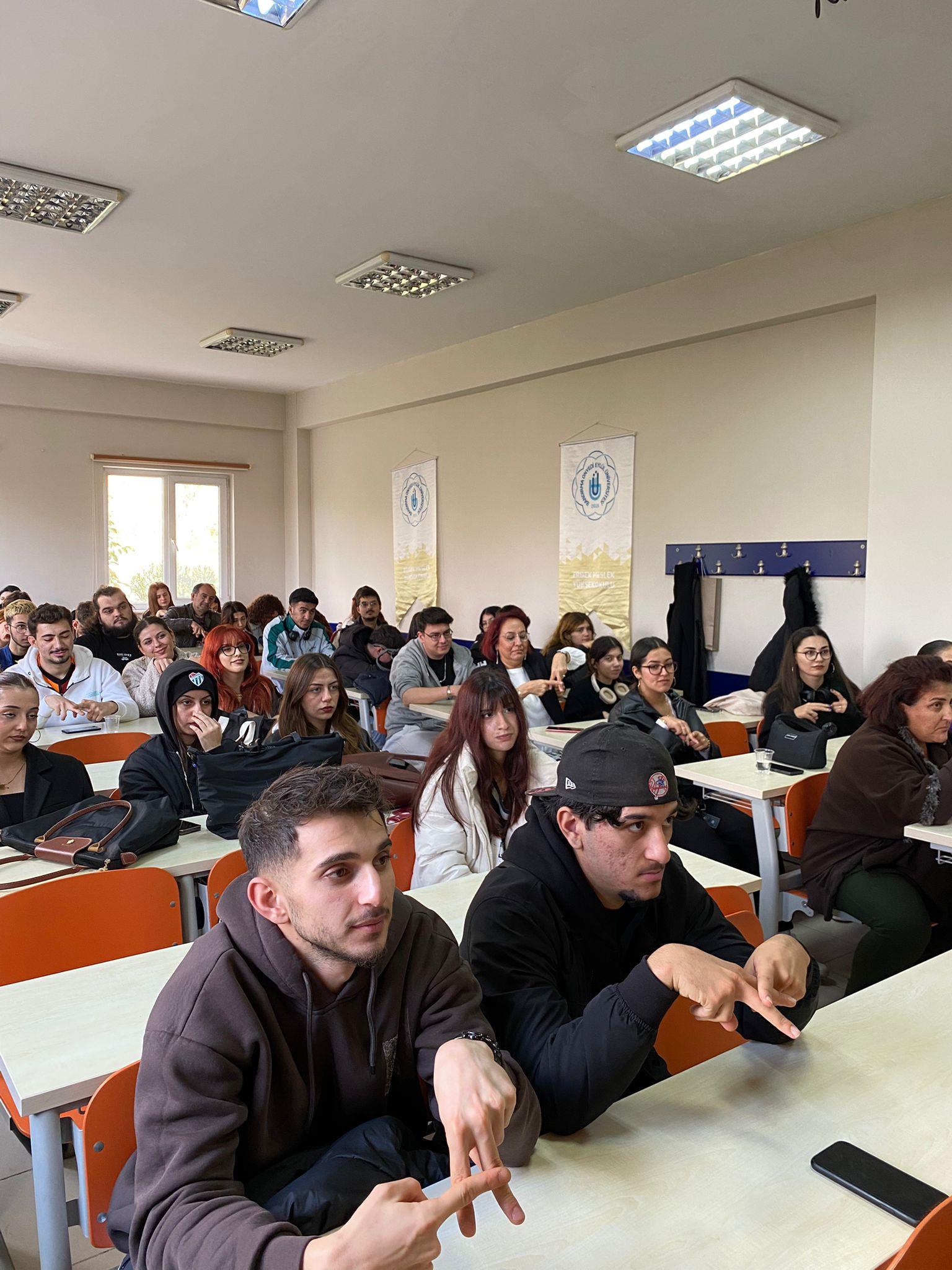 Meslek Yüksekokulumuzda ikinci sınıf öğrencilerimize verilen “Gönüllülük Çalışmaları” dersi kapsamında Sağlık Turizmi İşletmeciliği Programı öğrencilerimizden Halime Akdeniz tarafından yürütülen “Söylemeden Söylemenin Yolu” başlıklı proje kapsamında okulumuzda öğrenim gören öğrencilerimize yönelik olarak “Türk İşaret Dili” eğitimi düzenlendi. 3 Aralık Dünya Engelliler Günü'ne özel olarak düzenlenen eğitime öğrencilerimiz yoğun ilgi gösterdi. Eğitim, 1 Aralık 2025 tarihinde, Türk İşaret Dili Tercümanı ve Eğitmeni Dilek Karaarslan tarafından verildi. Bir saat süren eğitimde öğrencilere Türk İşaret Dili alfabesi, selamlaşma ve vedalaşma ifadeleri, mevsimler, aylar, günler, sayılar, meslekler, şehirler, ülkeler ve renkler gibi günlük iletişimde sık kullanılan temel işaretler uygulamalı olarak öğretildi. Akademik danışmanlığını Öğr. Gör. Dr. Özlem Aydoğdu Atasoy’un üstlendiği projede öğrencimiz Nurgül Düzen de proje yardımcısı olarak aktif görev aldı. Proje, işitme engelli bireylerle sağlıklı iletişim kurabilmeye katkı sağlamak, toplumda empati ile farkındalığı artırmak ve işaret dili kullanımının yaygınlaşmasına destek olmak amacıyla gerçekleştirildi. Projeyle, işitme engelli bireylerle toplum arasındaki iletişim engellerinin azaltılması, günlük hayatta sık kullanılan ifadelerin ve temel iletişim kurallarının öğretilerek daha kapsayıcı bir iletişim ortamı yaratılması hedeflendi. Eğitimin sonunda öğrenciler, 3 Aralık Dünya Engelliler Günü dolayısıyla hep birlikte anlamlı bir farkındalık mesajı da verdi. Program, Dilek Karaarslan’a teşekkür belgesi verilmesi ve çiçek takdimi ile sona erdi.